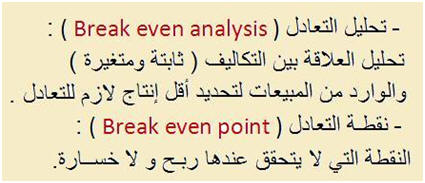 حسـاب تحليل نقطـة التعادل حيث تتساوى